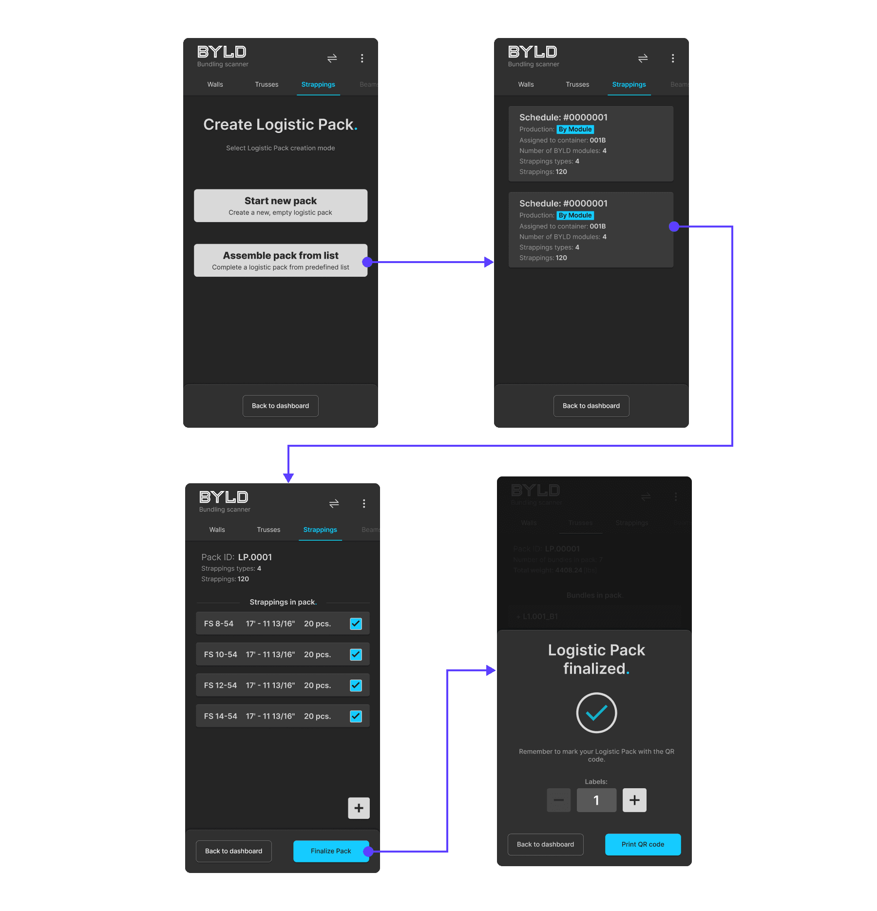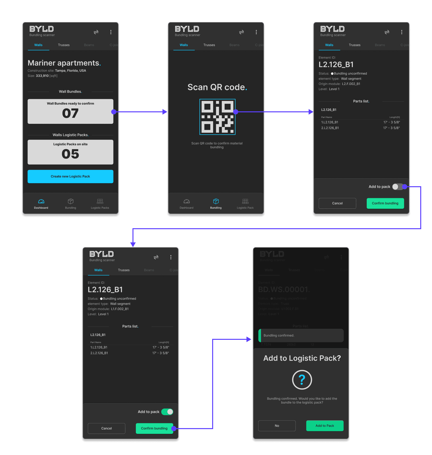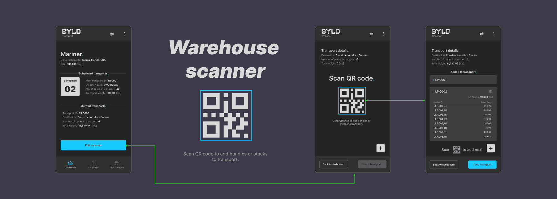 BYLD Scanner is a dedicated warehouse application designed to support bundling, palletisation, and transport preparation for prefabricated construction elements within the BYLD ecosystem.